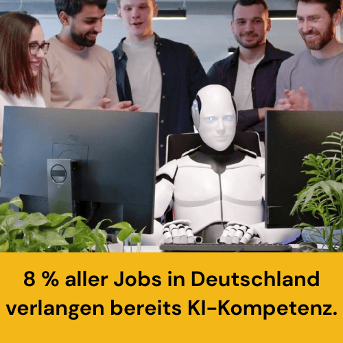 8 % der neuen Stellenanzeigen fordern bereits explizit KI-Kompetenz – vor allem in IT, Marketing, Controlling, Logistik und HR.